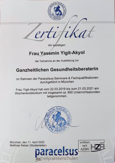 Ganzheitliche Gesundheitsberaterin, Paracelsus Schule München