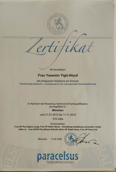 Fachberaterin zur naturgemäßen Kinder- und Naturheilkunde, Paracelsus München